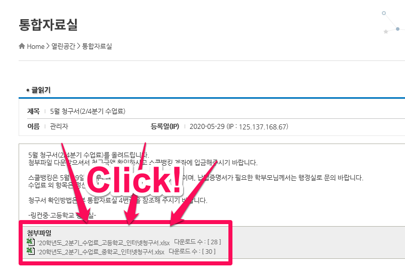 1. °Ô½Ã±Û ¸Ç ¾Æ·¡ÀÇ Ã·ºÎ µÇ¾îÀִ û±¸¼ ¿¢¼¿ ÆÄÀÏÀ» Ŭ¸¯ÇÕ´Ï´Ù.