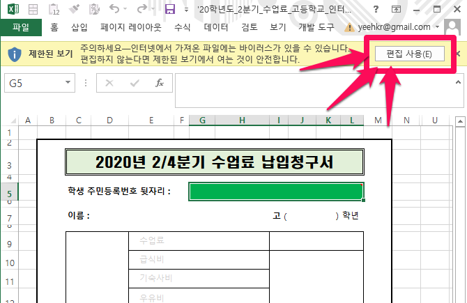3. ÀúÀåµÈ ÆÄÀÏÀ» '¿±â' Çϼż ¿¢¼¿ À§ÂÊ ³ë¶õ»ö ¹Ú½ºÀÇ [ÆíÁý »ç¿ë] ¹öưÀ» ´·¯ÁÖ¼¼¿ä. [ÆíÁý »ç¿ë] ¹öưÀÌ ¶ßÁö ¾ÈÈç °æ¿ì´Â ÀÌ °úÁ¤À» »ý·«Çϼŵµ µË´Ï´Ù.
