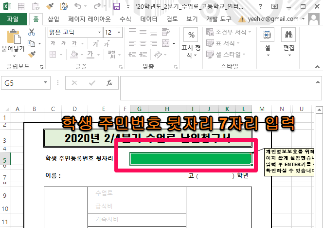 4. ÆÄ¶õ»ö ¶Ç´Â ³ì»ö ¹Ú½º¿¡ Çлý Áֹεî·Ï¹øÈ£ µÞÀÚ¸®(7ÀÚ¸®)¸¦ ÀÔ·ÂÇϽðí [ENTER]۸¦ ´©¸£½Ã¸é û±¸³»¿ªÀ» È®ÀÎÇÏ½Ç ¼ö ÀÖ½À´Ï´Ù.