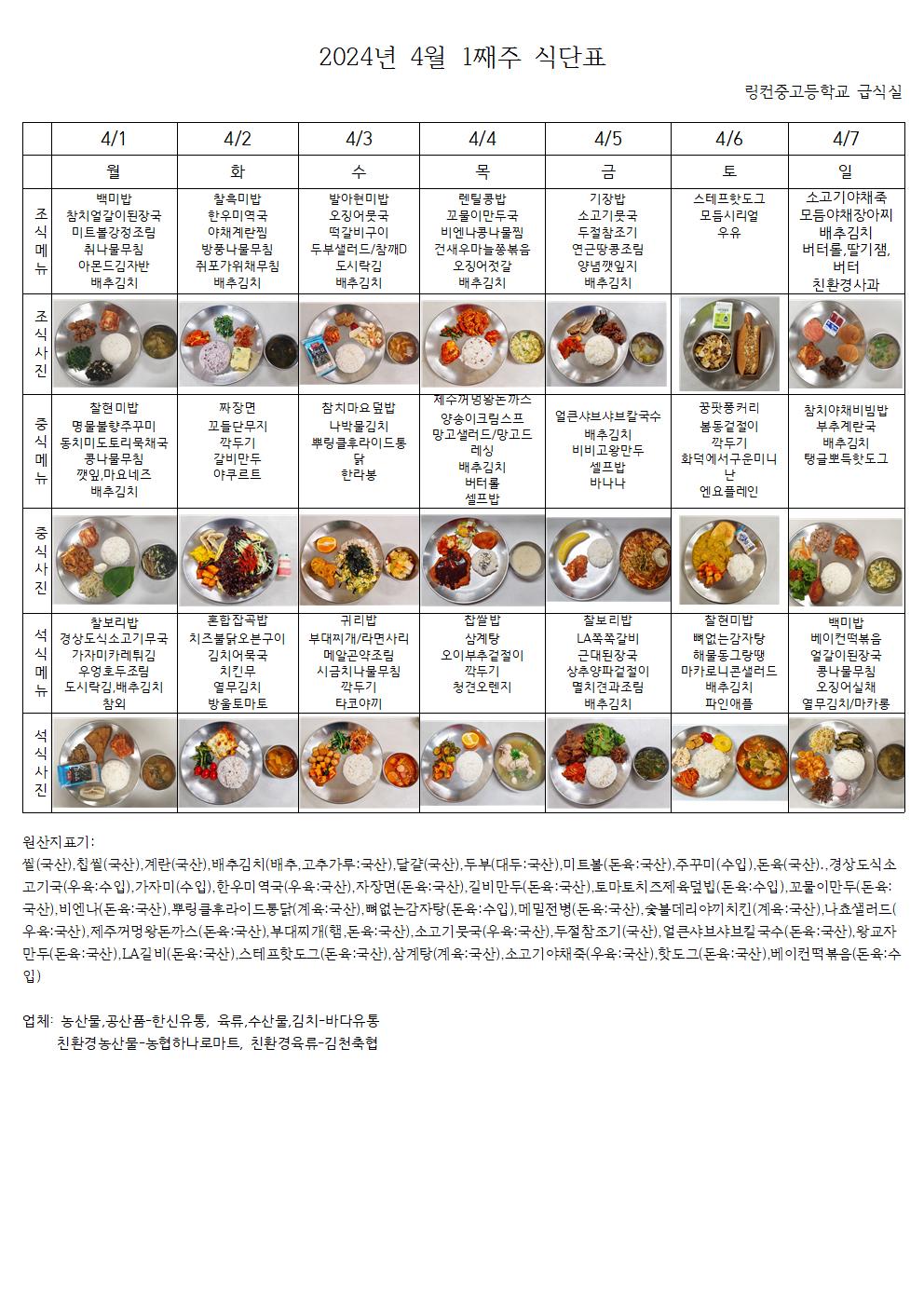 2024³â 4¿ù 1°ÁÖ ½Ä´ÜÇ¥
