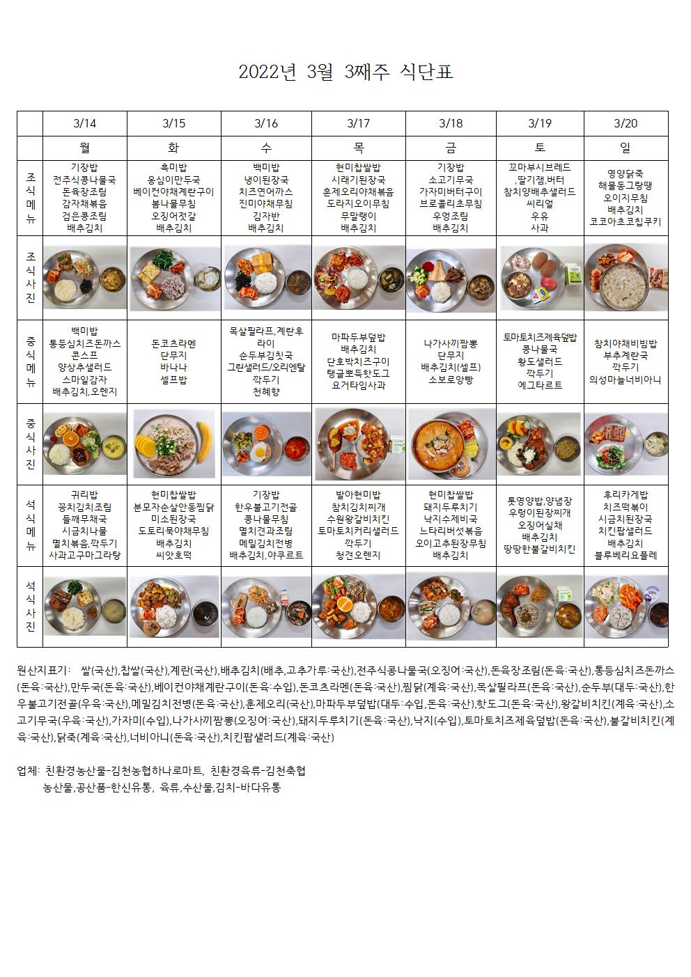 2022³â 3¿ù 3°ÁÖ ½Ä´ÜÇ¥