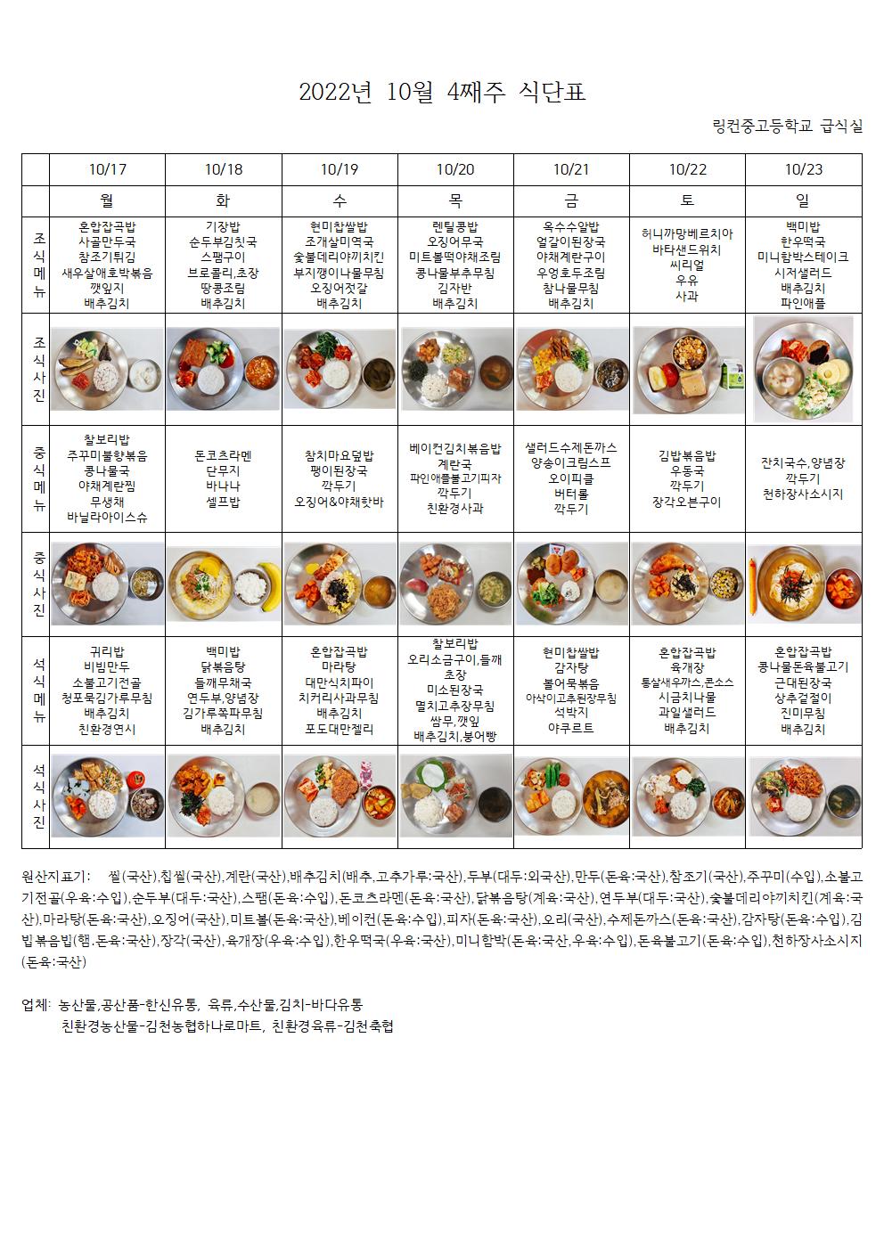 2022³â 10¿ù 4°ÁÖ ½Ä´ÜÇ¥