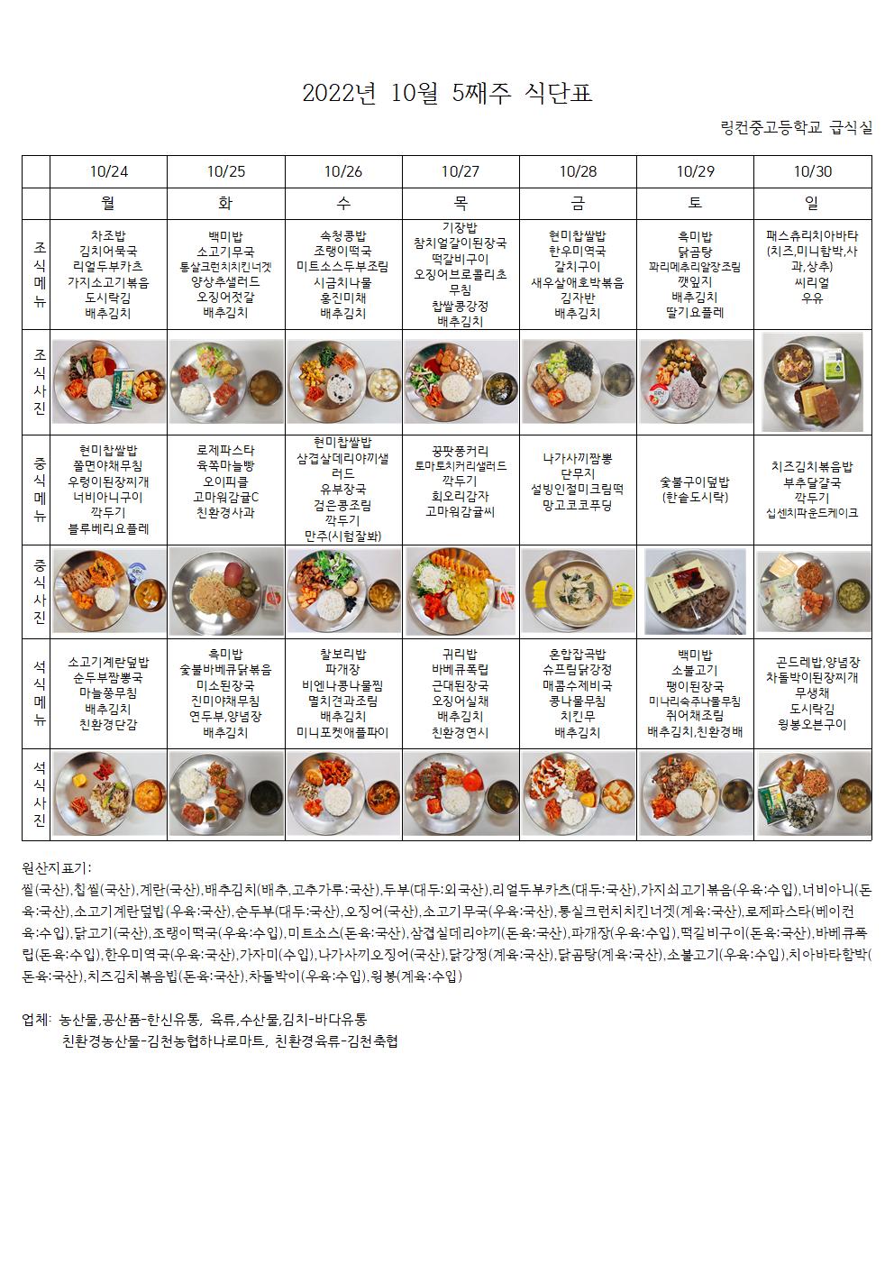 2022³â 10¿ù 5°ÁÖ ½Ä´ÜÇ¥