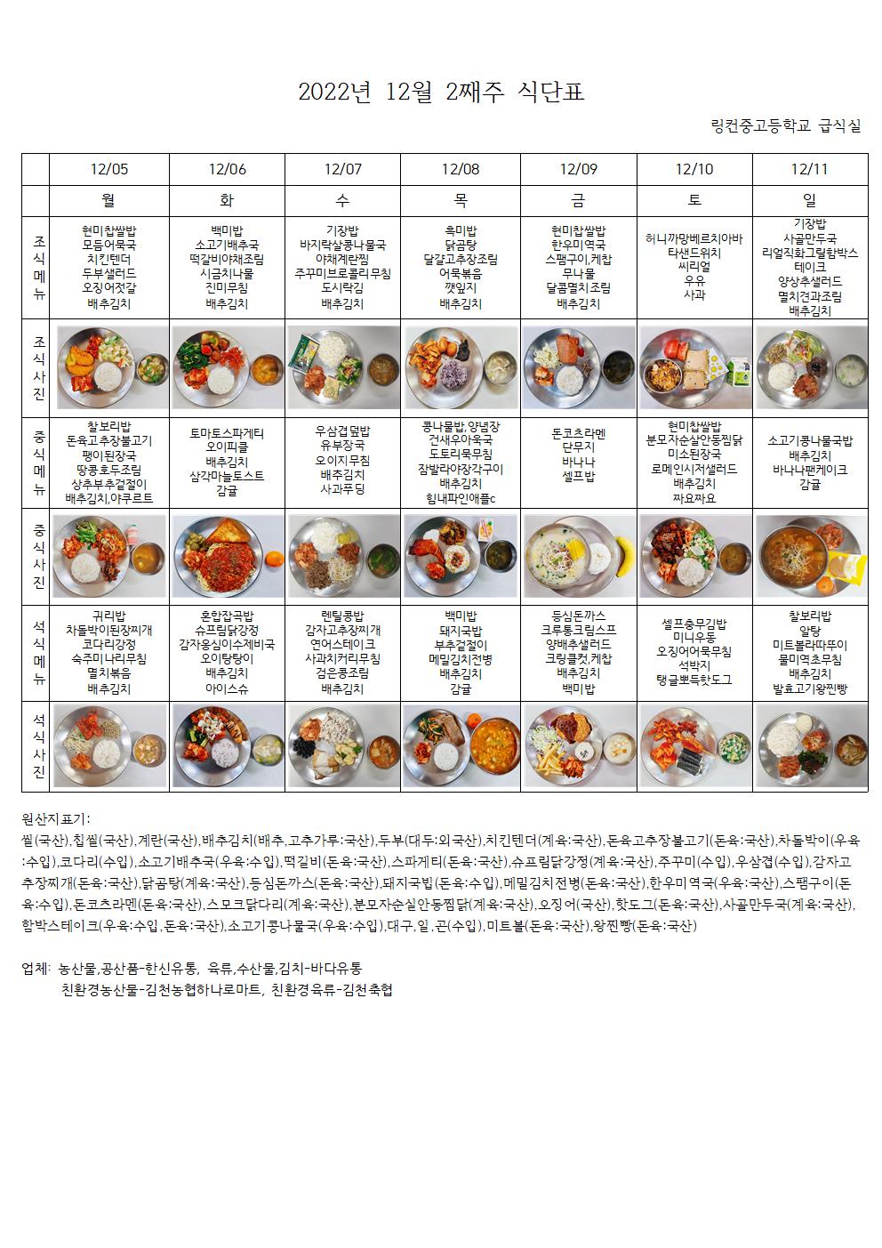 2022³â 12¿ù 2°ÁÖ ½Ä´ÜÇ¥