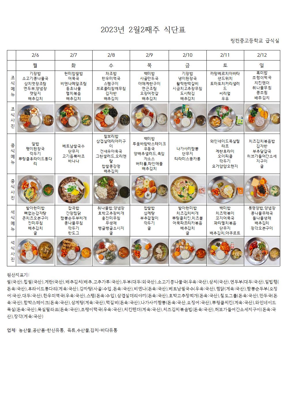 2023³â 2¿ù 2°ÁÖ ½Ä´ÜÇ¥