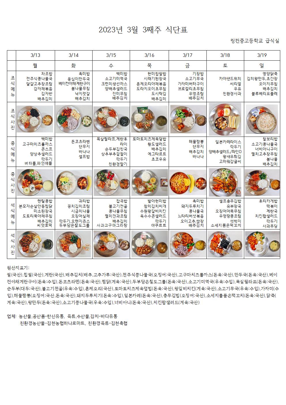 2023³â 3¿ù 3°ÁÖ ½Ä´ÜÇ¥