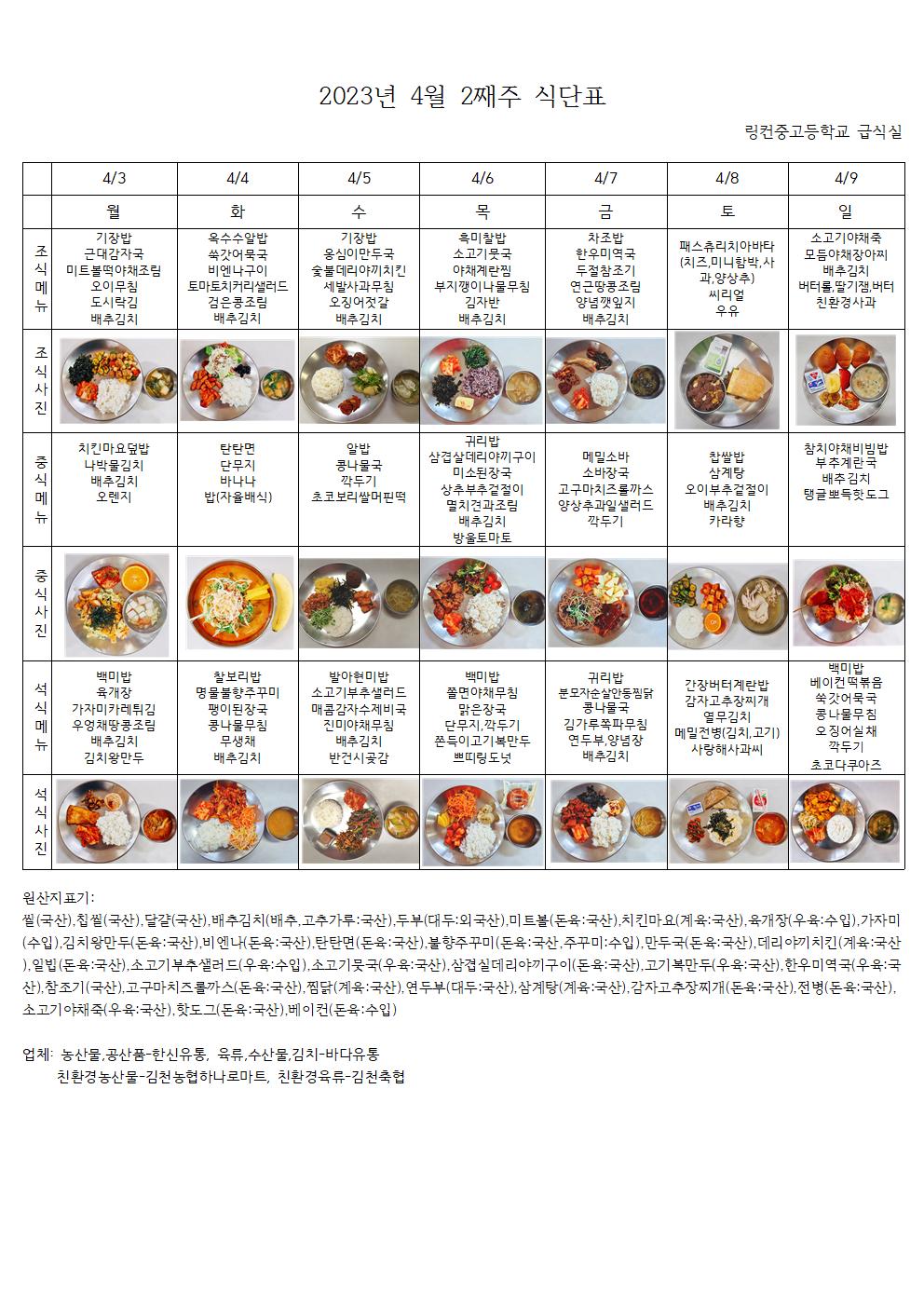 2023³â 4¿ù 2°ÁÖ ½Ä´ÜÇ¥