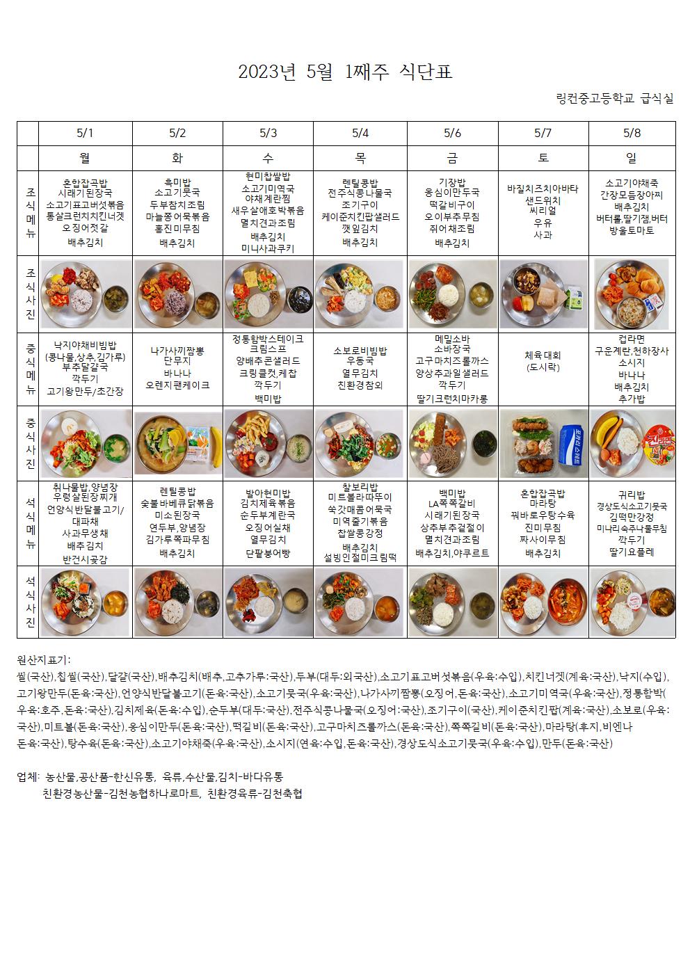 2023³â 5¿ù 1°ÁÖ ½Ä´ÜÇ¥