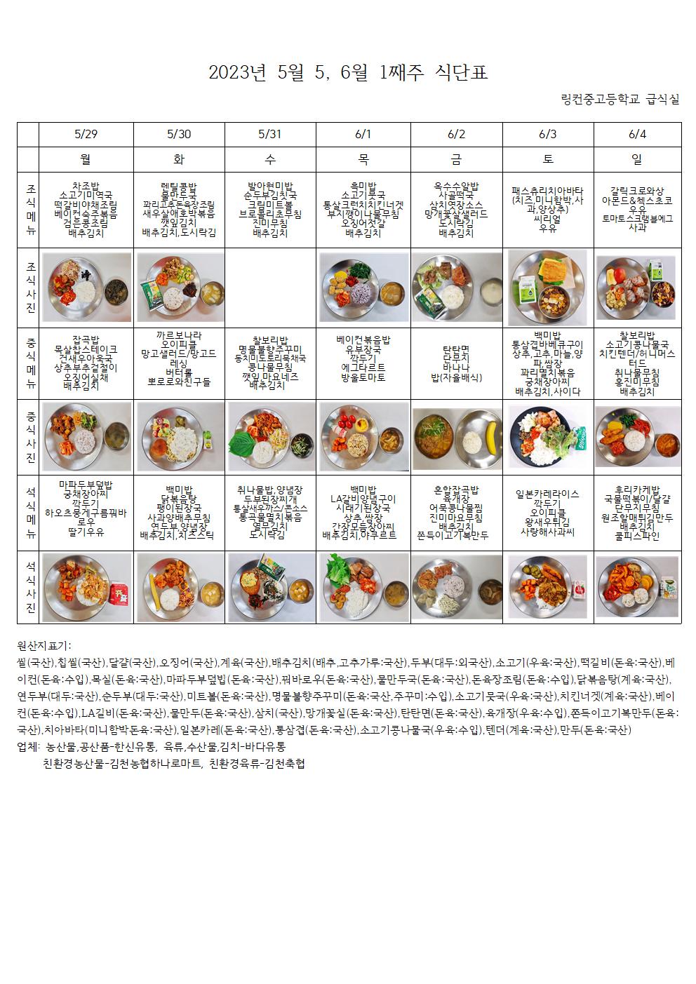 2023³â 5¿ù 5°ÁÖ~ 6¿ù 1°ÁÖ ½Ä´ÜÇ¥