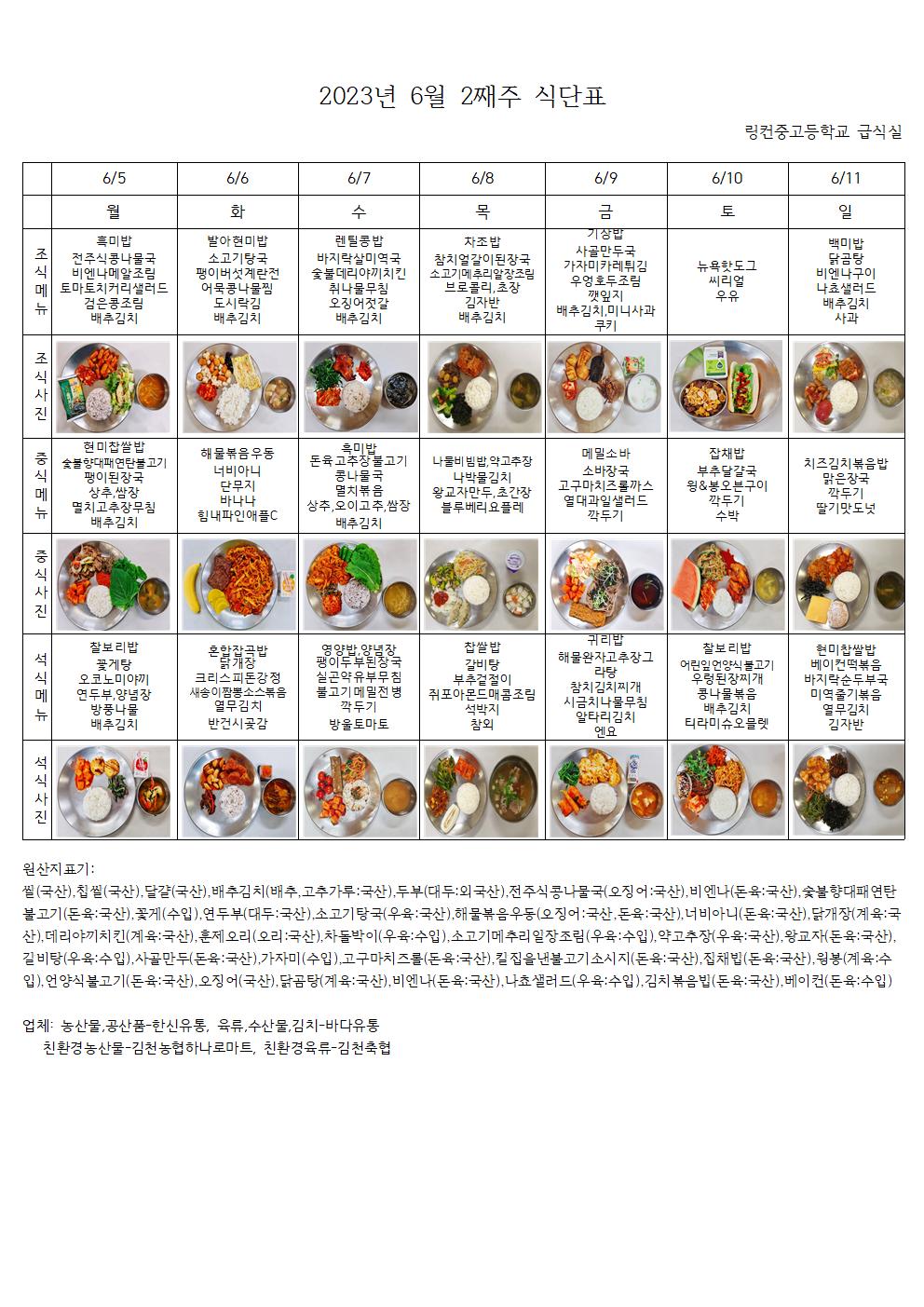 2023³â 6¿ù 2°ÁÖ ½Ä´ÜÇ¥