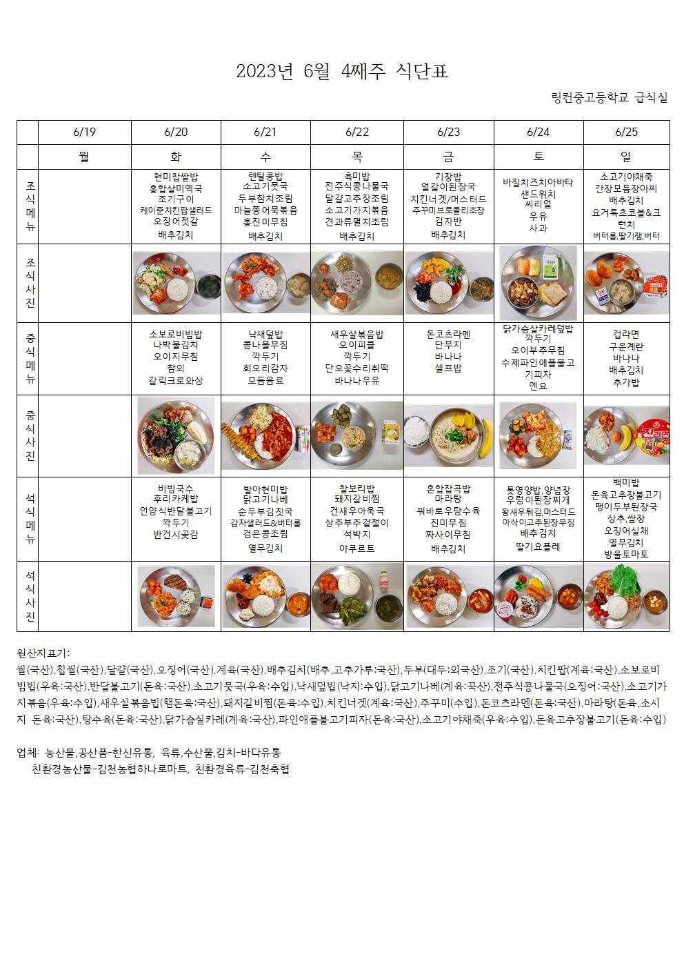 2023³â 6¿ù 4°ÁÖ ½Ä´ÜÇ¥