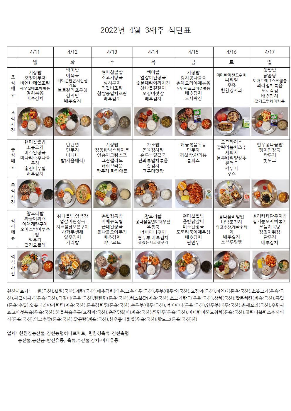 2022³â 4¿ù 3°ÁÖ ½Ä´ÜÇ¥
