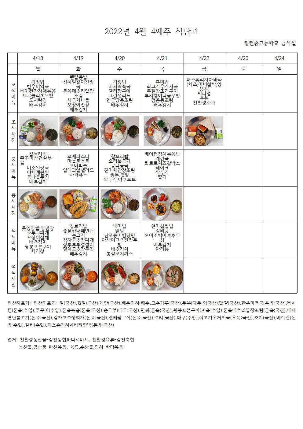2022³â 4¿ù 4°ÁÖ ½Ä´ÜÇ¥