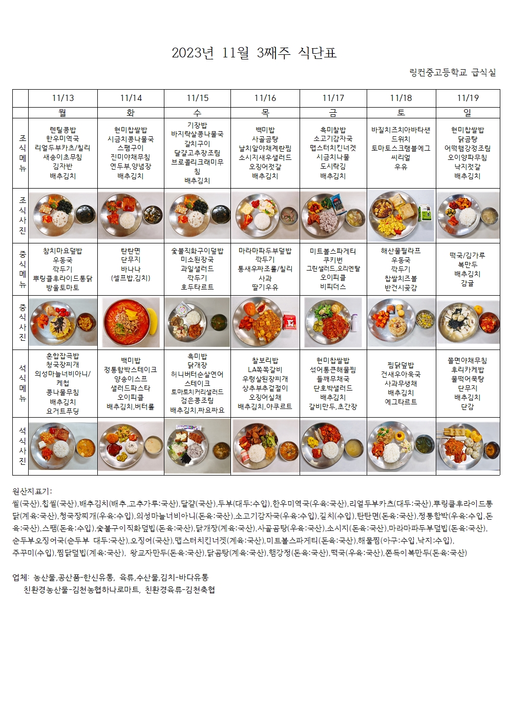 2023³â 11¿ù 3°ÁÖ ½Ä´ÜÇ¥