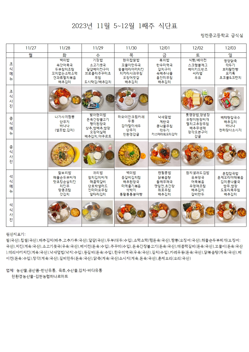 2023³â 11¿ù 5~12¿ù 1°ÁÖ ½Ä´ÜÇ¥
