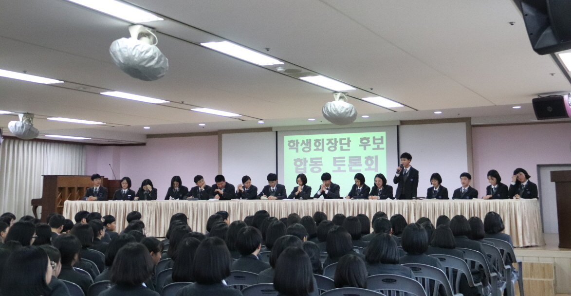3¿ù 2ÀÏ Åä¿äÀÏ ¿ÀÈÄ ÇлýȸÀå´Ü ¼±°ÅÈĺ¸ÀÚ·Î Ã⸶ÇÑ ÇлýµéÀÇ ÇÕµ¿ Åä·Ðȸ°¡ ÀÖ¾ú½À´Ï´Ù.