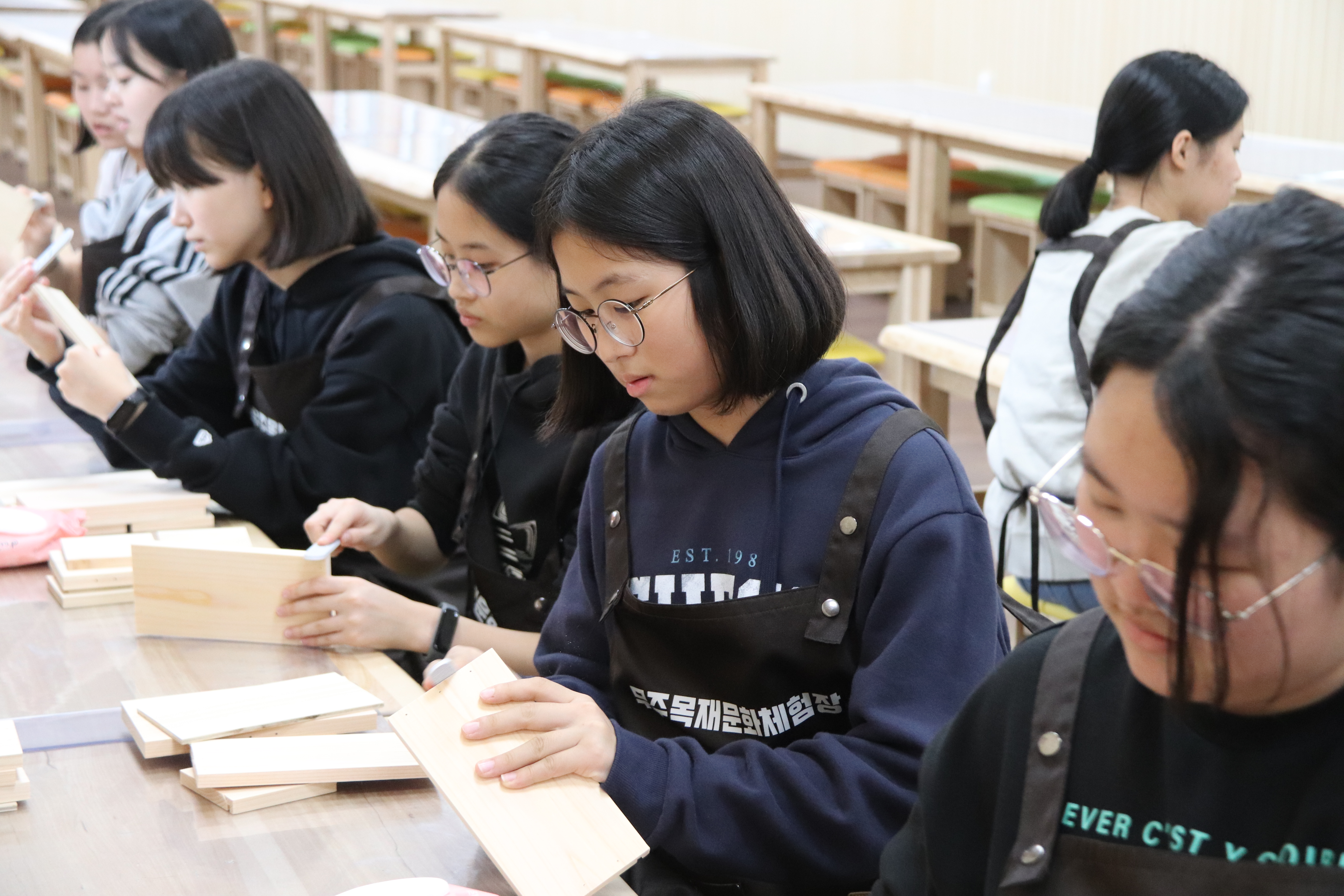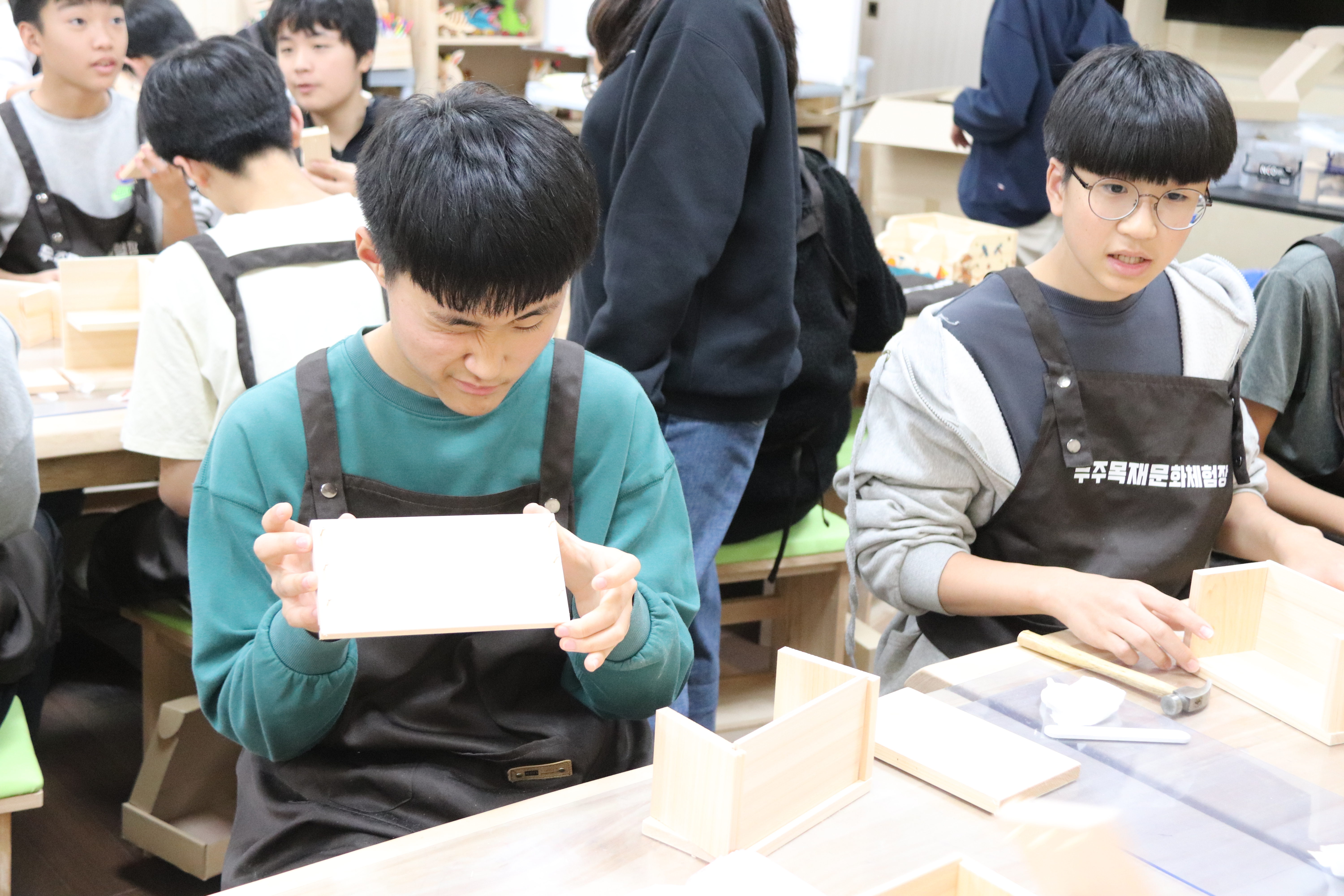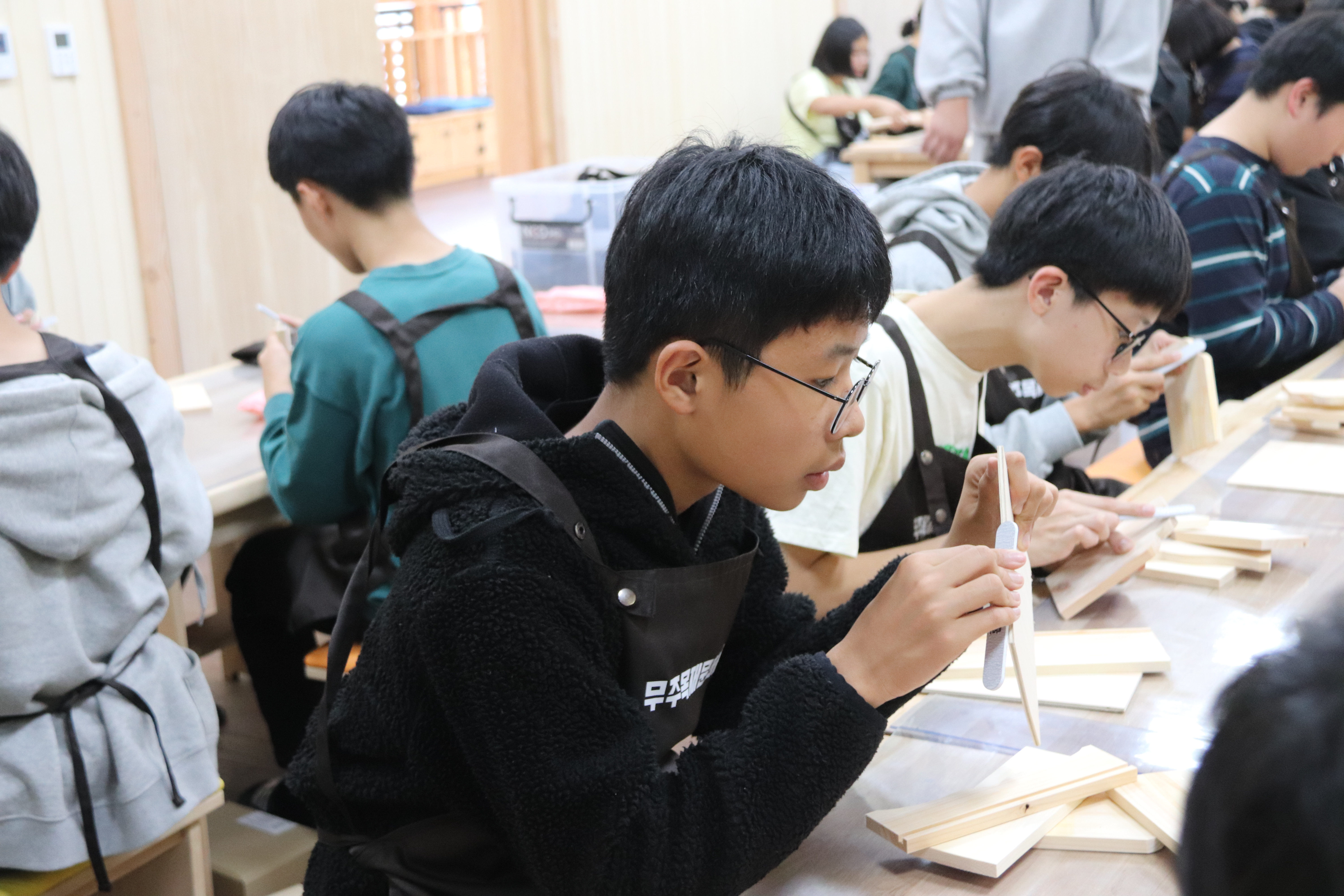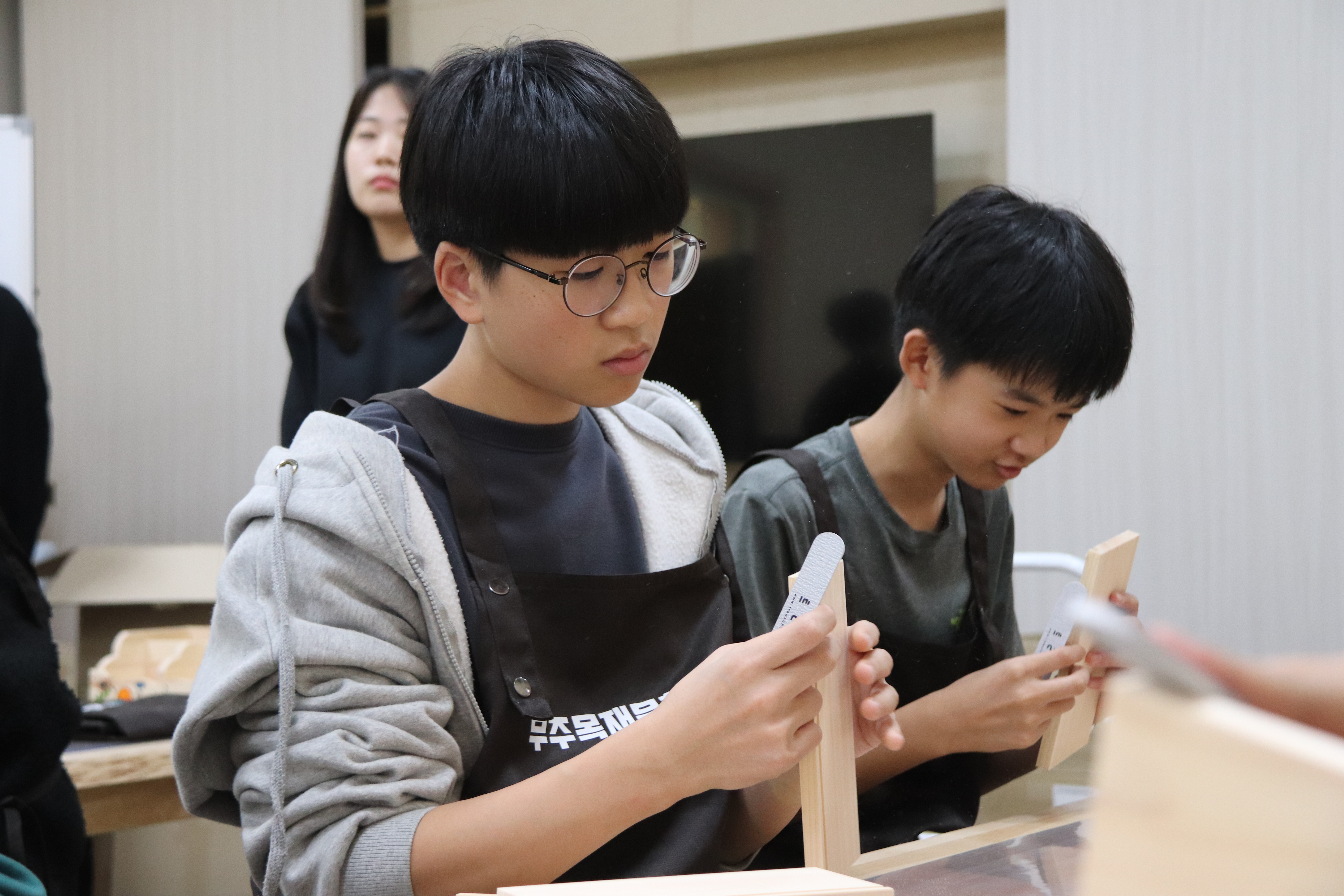 ÇлýµéÀÌ ´«À» ¹Ý¦ÀÌ°í °ïÃæÀ» °üÂûÇϸç, ¸ñ°øÈ°µ¿¿¡ ÁýÁßÇÏ´Â µî